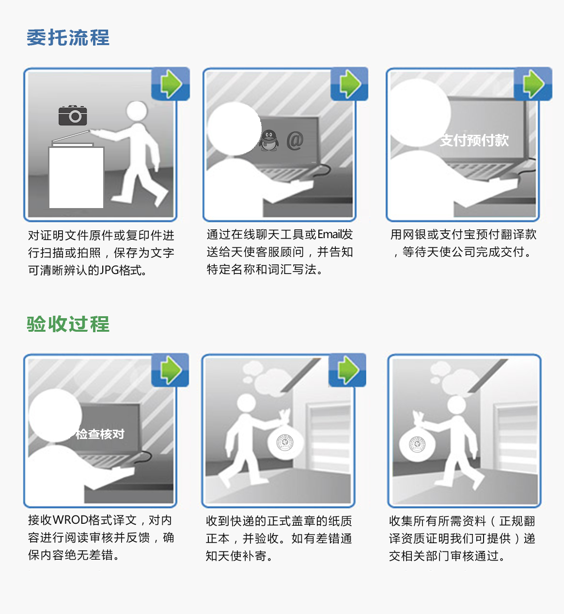 天使翻譯™是由多地多家經國家認證的證書翻譯公司聯合组成的證件翻譯機構,無論您是递交到國家相關部委、各級地方行政部門或國外政府機構、團體、學校或递交各國領事館、大使館的签證材料翻譯,也無論哪種語言。天使都能够保證行文規範、譯文真實有效。證明文件虽小、但是天使深知其責任重大,些許的誤差都會给客戶造成不必要的麻煩,因此您需要尋找一家真正可靠值得信賴的證書翻譯公司為您提供服務。 天使翻譯™將是签證翻譯公司中的不二之選。